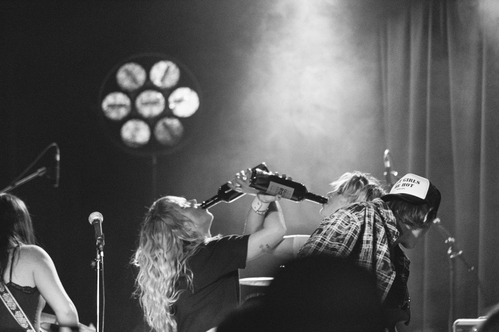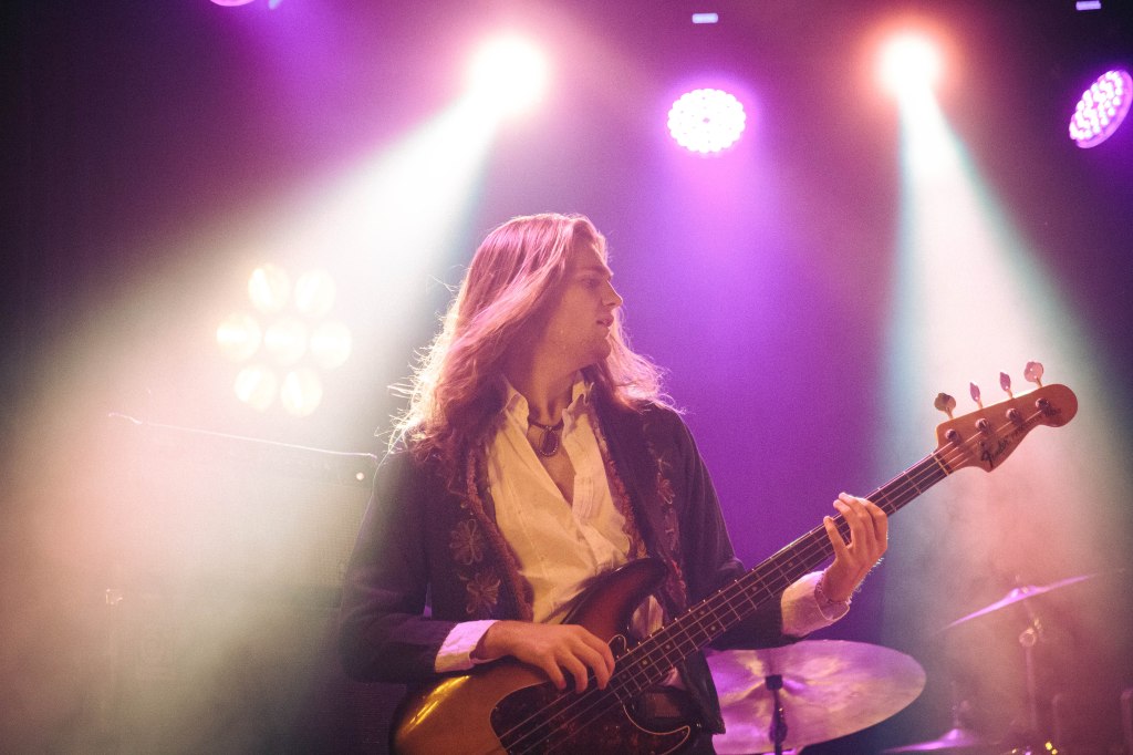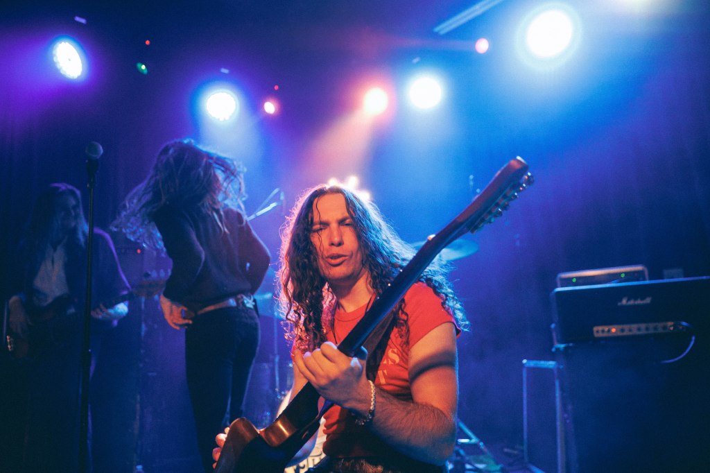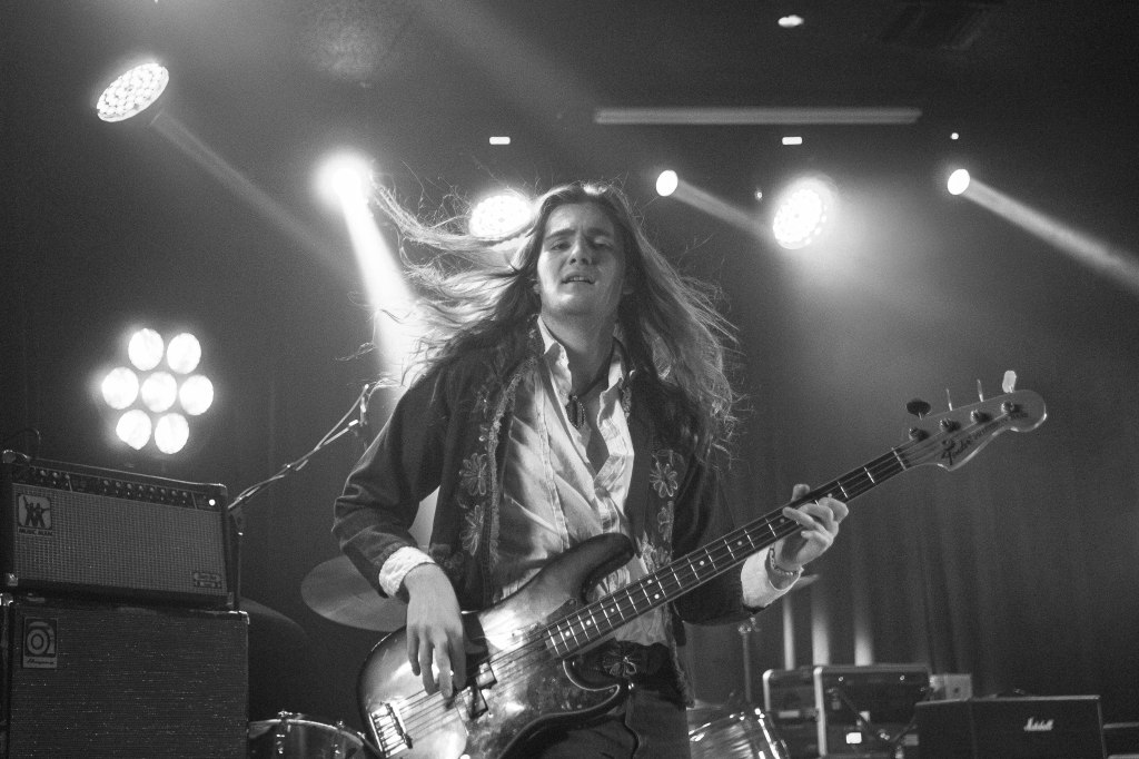 After Pearl’s rousing finale, the crowd buzzed with excitement, eagerly anticipating the night’s main act. As the stage was reset, the electrifying atmosphere grew, setting the perfect scene for The Band Feel to make their entrance. Taking the stage on their first headlining tour, The Band Feel transported the audience from Grand Rapids to the historic Haight-Ashbury neighborhood of San Francisco. With Persian rugs at their feet and the glow of vintage amps illuminating their setup, the band members, clad in bell-bottoms and sporting long, flowing hair, evoked a feeling reminiscent of the bands in Southern California’s 1970s heyday.